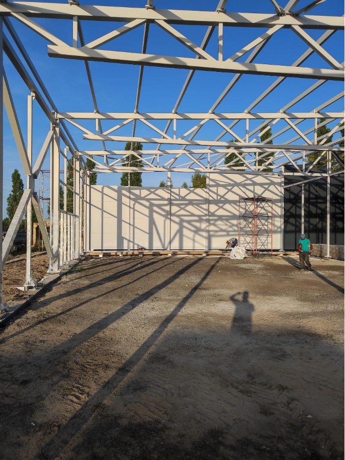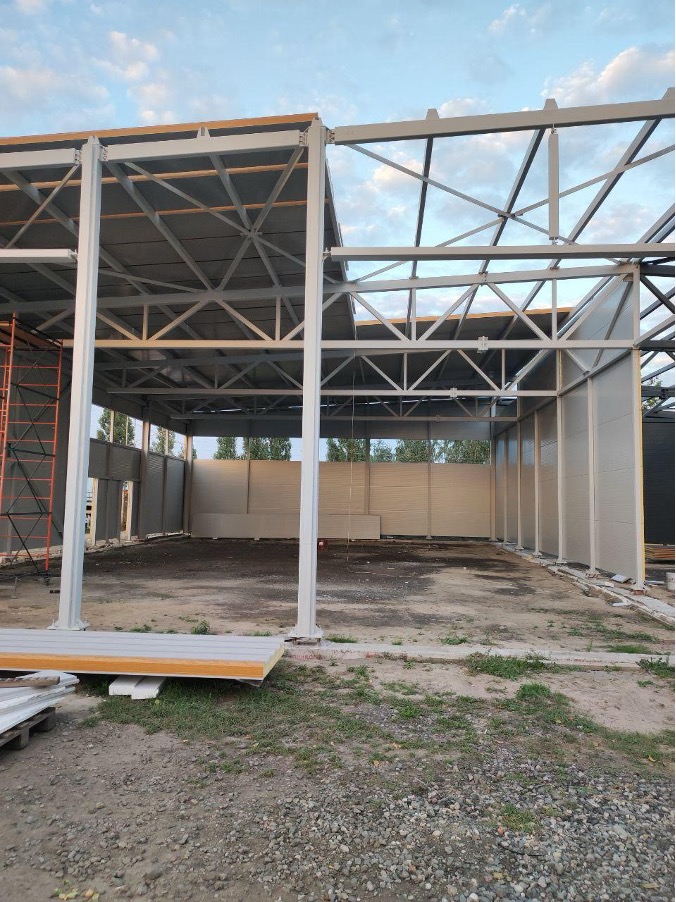 Срок выполнения — установка на существующие фундаменты и зашитие стен PIR панелями — 20 рабочих дней