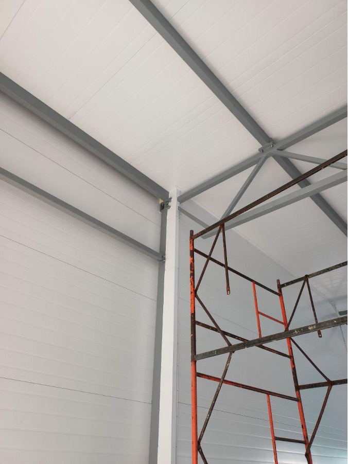Срок выполнения — установка на существующие фундаменты и зашитие стен сэндвич панелями — 14 рабочих дней